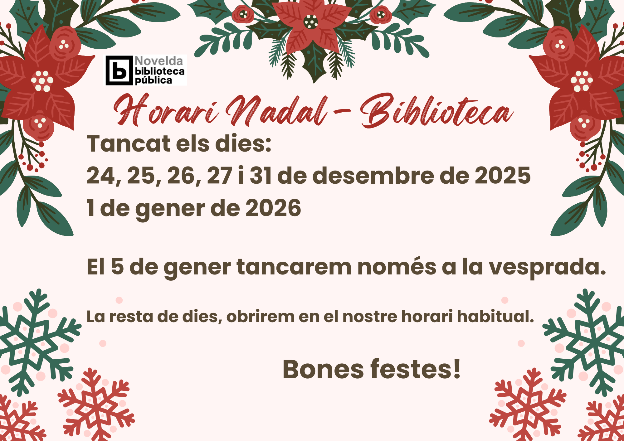 - Horari Nadal – Biblioteca. - 17 diciembre, 2025