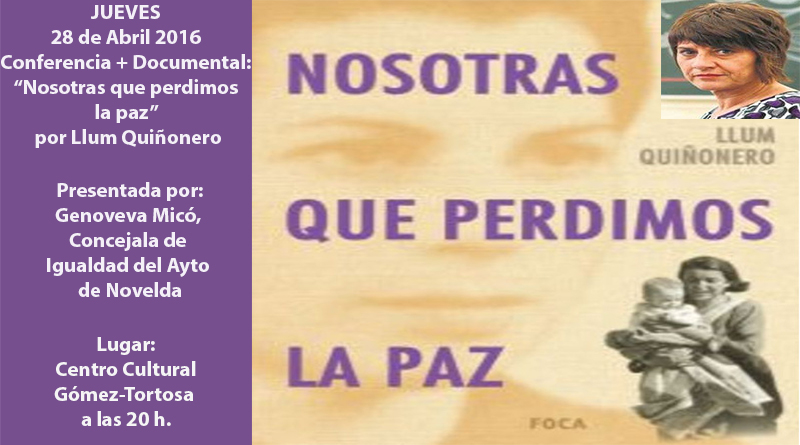Read MoreDijous 28 d’Abril a les 20h, al Centre Cultural Gómez-Tortosa tindrà lloc la presentació del documental NOSOTRAS QUE PERDIMOS LA PAZ»