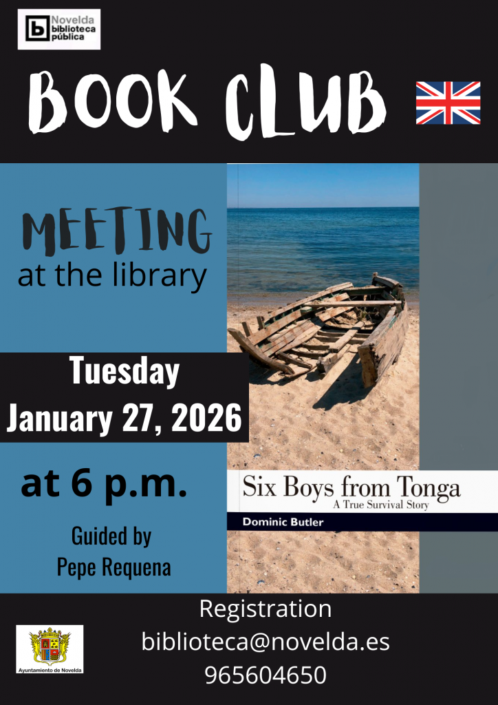The reading proposed for the month of January is “Six Boys from Tonga” and it is available for loan at the General Library of Novelda. You just need to have the reader card of the Public Library Network of the Valencian Community (free).