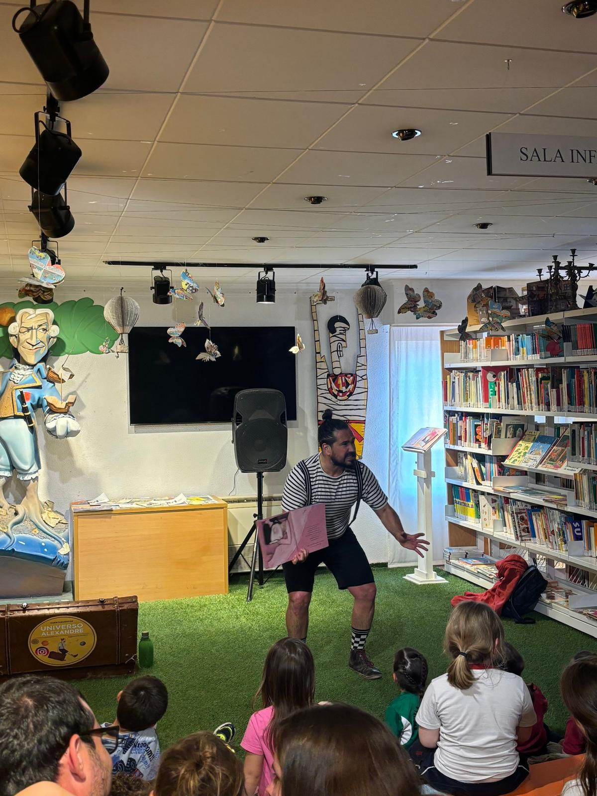 Alexandre nos hizo viajar a través de un divertido popurrí de historias que conquistó a grandes y pequeños, convirtiendo la biblioteca en un auténtico mundo de cuento.